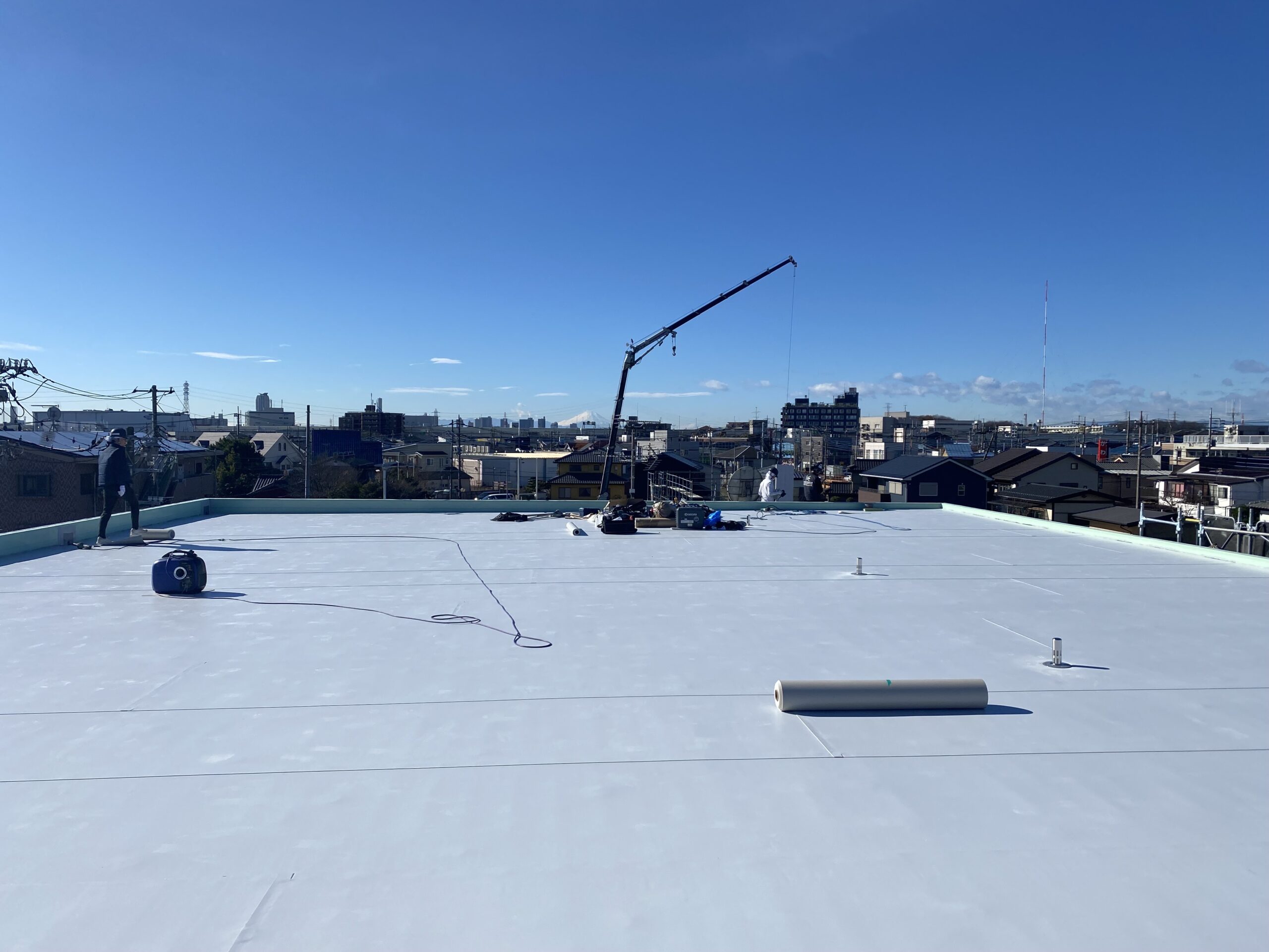 弊社はまだまだ小さく、若い会社でありますが、屋上塩ビシート防水の工事において迅速かつ美しい施工には絶対の自信を持っております。