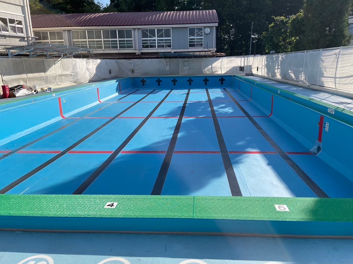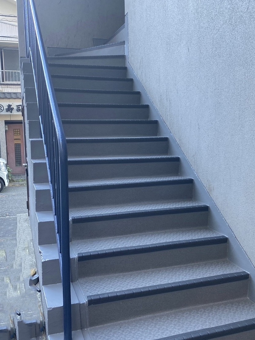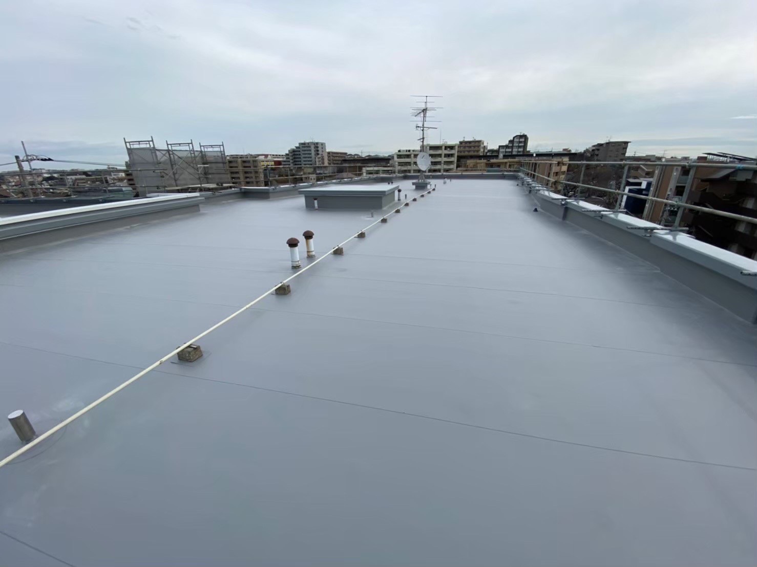 長尺シートは、開放廊下や階段、プールサイドの施工に適しています。